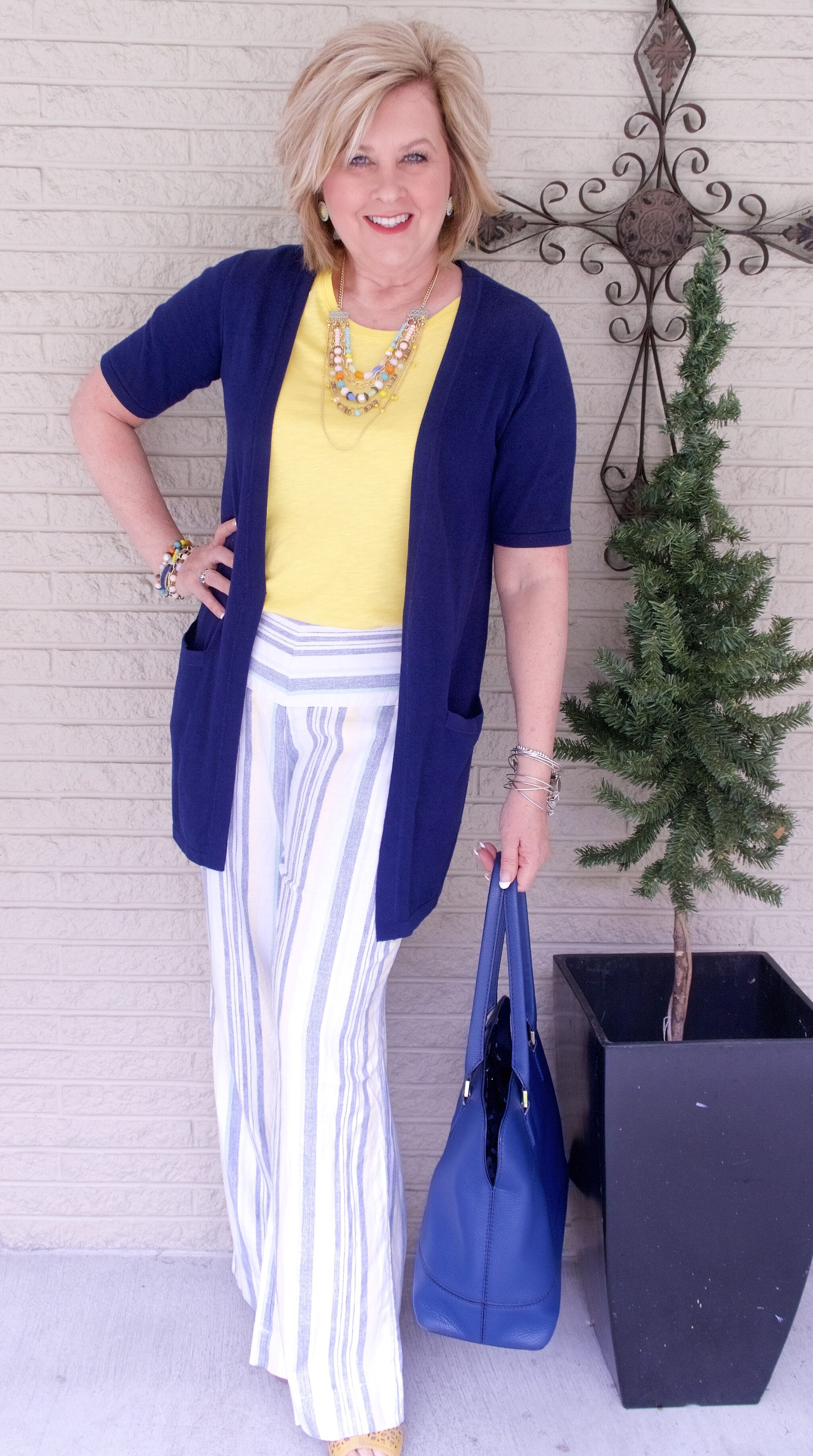 How cute are these pants???? I knew the minute I laid my eyes on these pants that I would be leaving the store with them. Lol! These wide legs striped linen blend pants are from Cato. I love linen for spring and summer, it is so cool and light. Joe is not a fan of the wide leg pants but in the words of my granddaughter Matti, “I not care.” I love the large, wide legs and when I wear them I will try to wear a tighter fitting top with them.