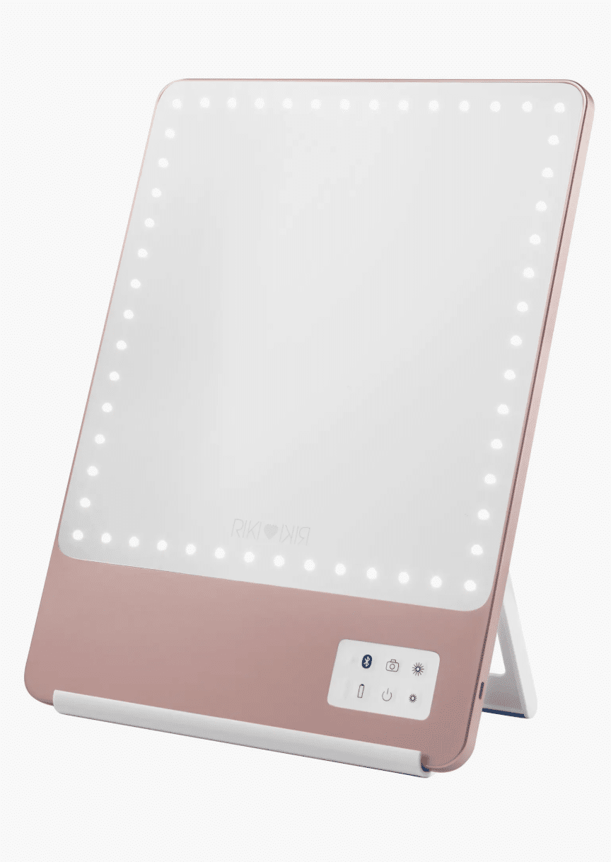 This Makeup Mirror is sleek and pretty, and it folds flat. It feels a little more elevated and giftable if you like something that looks nice on the counter, too.
