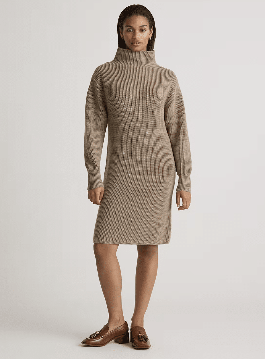 This sweater dress is one of those easy pieces that looks put together without any effort. The merino wool is soft and cozy but not heavy, and the relaxed fit makes it flattering and comfortable! You can dress it up or keep it casual, and it’s warm enough to wear all winter.