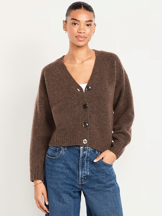 I’m a sucker for a good cardigan, and this one is soft, cozy, and relaxed in all the right ways. The wool-blend knit gives it that warm, classic feel we all love in the colder months. It’s perfect for throwing on when you want something easy and comfortable but still cute. Definitely one of those pieces you’ll live in all season.