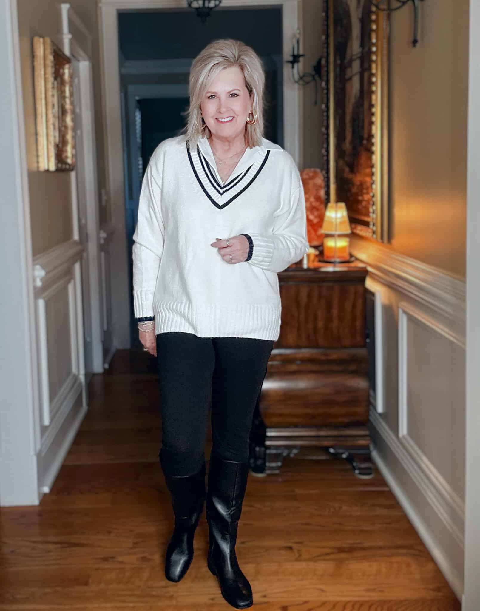 Kohl’s has been hitting the sweet spot lately with sweaters that look classic, feel extra soft, and don’t cost a small fortune. Today I’m sharing three of my favorites, all styled with the same black leggings and riding boots, so you can see how easy these pieces are to mix and match.