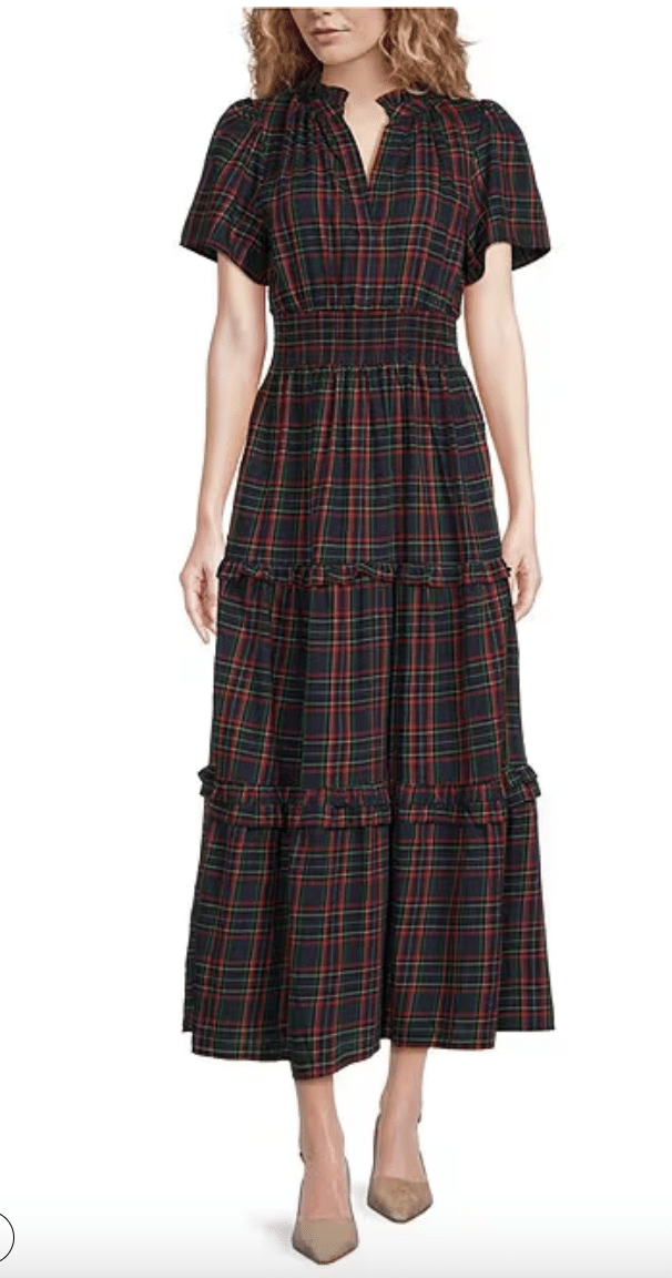 This plaid maxi is such a fun piece for the holidays. The print makes it festive without looking costume-y. You can wear it with boots now and switch to flats or heels for December plans. It’s a simple, comfortable dress you can grab for all kinds of events.