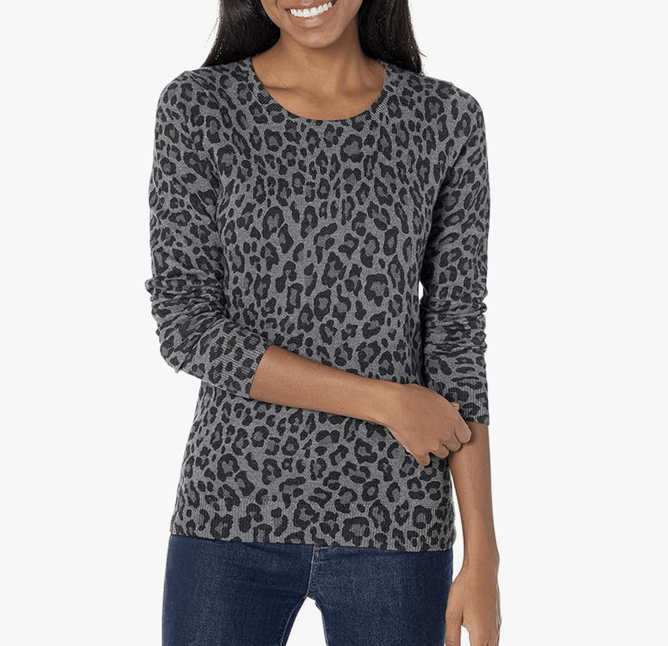 This gray leopard print sweater is one of those easy pieces that quietly does a lot of work in your closet. It gives you the softness and comfort you want in winter, but the subtle leopard pattern keeps it from feeling flat or boring. Gray can sometimes feel a little “blah,” but this print adds just enough personality without screaming for attention. It’s lightweight, which means it layers beautifully under jackets and vests, and it’s comfortable enough to wear all day without that heavy, bulky feeling.
