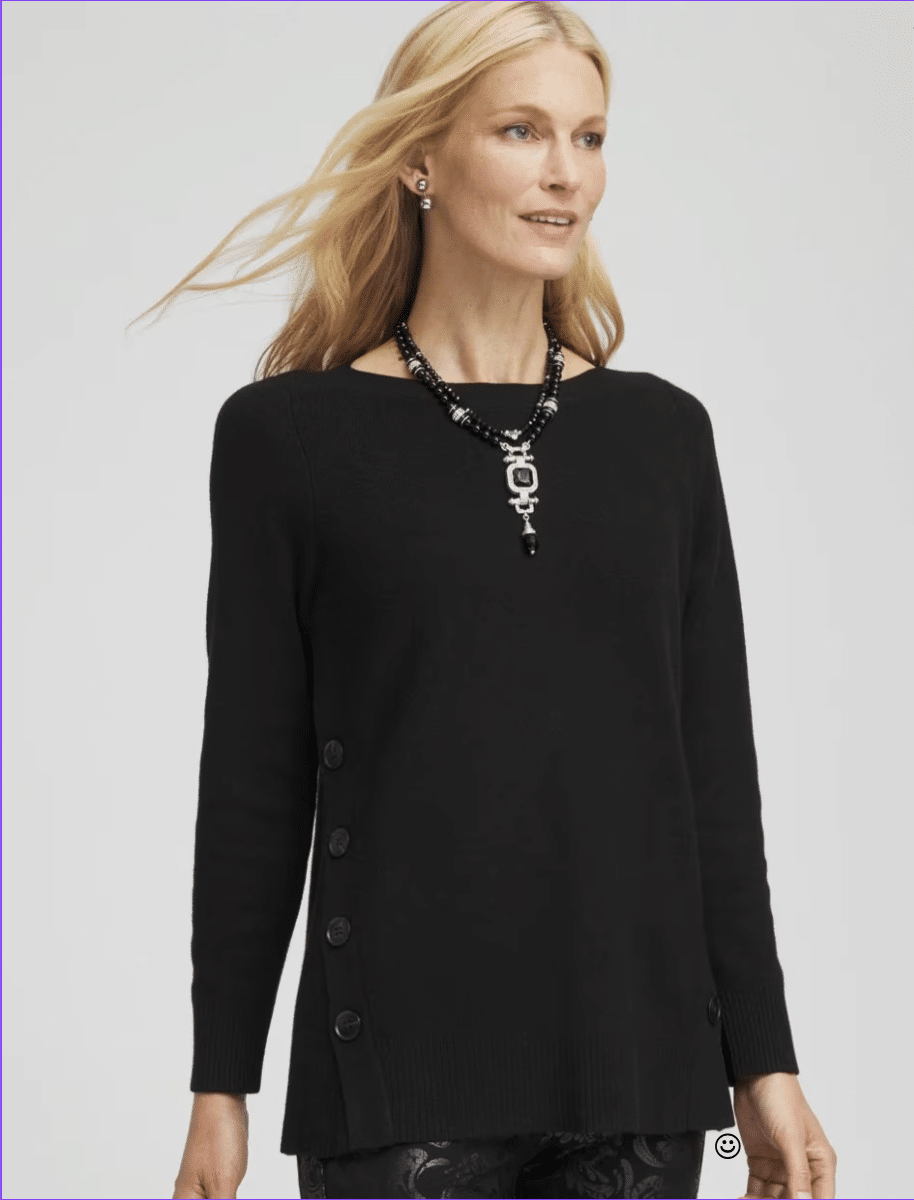 This Tunic Sweater is all about relaxed elegance. Its longer length offers great coverage, and the button details add a bit of flair. Throw on a statement necklace if you want to fancy it up a bit.